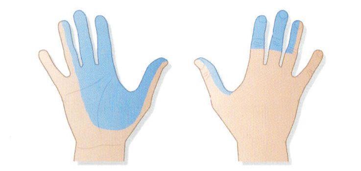 Daumen und Zeigefinger, gelegentlich mit Ausstrahlung bis in die Schulter