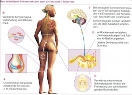 Mit der Zeit kann es vorkommen, dass es keine Ursache für den Schmerz mehr gibt, die Schmerzen aber weiter wahrgenommen werden. Ähnlich wie bei einem Ohrwurm, der sich auch im Hirn festgesetzt hat. So können dann normale Berührungen als schmerzhaft empfunden werden oder der Schmerz breitet sich auf andere Körperregionen aus.