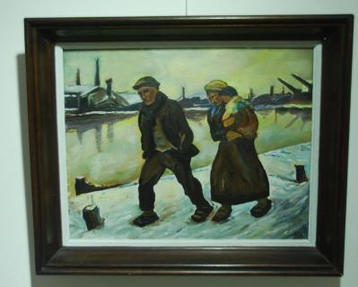 Seine fotorealistischen Ölbilder präsentieren diese Landschaften, die Kathedralen der Stahlgewinnung, die eher stillen kleinen Industriegebiete, Fragmente, wie Stillleben aus Rohren morbide verrostet. Und Menschen, die gerne an diesen Orten wohnen.